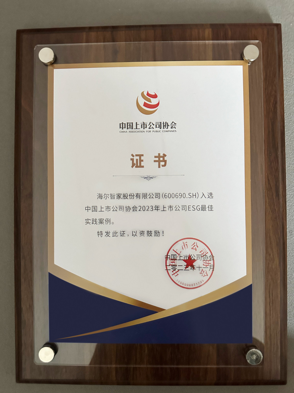 - 海爾智家入選“2023年上市公司ESG最佳實(shí)踐案例”
