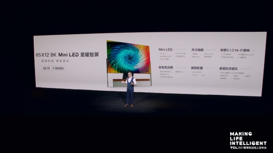 TCL X12 8K Mini LED 星曜智屏85英寸售價99999元,將于今年2季度上市。