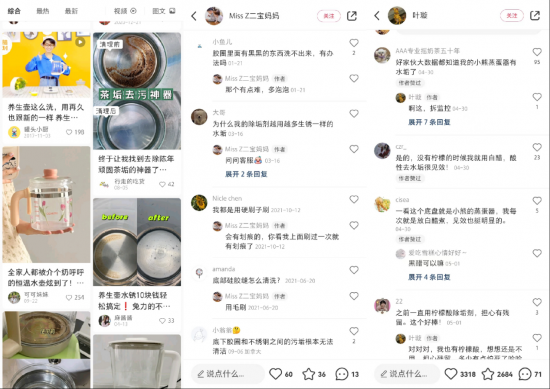 在小紅書搜索“養生壺 糊底”、“養生壺 粘底”等相關關鍵詞,你會發現有超過3000篇的用戶吐槽帖,不少消費者因為烹煮牛奶等蛋白質含量較多的食材而發生糊底現象,而烹煮小米、紅豆等高淀粉食材時更是容易粘鍋,難清潔,至于養生群體最愛燉煮的銀耳,更是養生壺糊底的“罪魁禍首”。