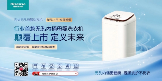 【家電資訊-新品速遞 - 洗衣機,作者:編輯】近日,針對有孔洗衣機易對衣物造成二次污染,并有可能引起細菌滋生的問題,海信洗衣機推出了全新無孔母嬰洗衣機,以無孔內桶黑科技,通過三重健康防護,升級洗護體驗,開啟健康洗護新紀元。