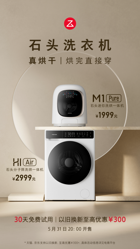 5月31日尾款開售,石頭洗烘一體機H1 Air和M1 Pure羊毛不薅更待何時?