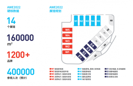 據悉,AWE 2022的展會規模將進一步擴大,展館數量達到14個,展覽面積超過16萬平方米,預計吸引1200+家品牌參展,參觀人數將突破40萬人次。此外,展會主辦方預計將有上百個品牌把全年最重量級的新品、新科技首發安排在AWE,第一時間將年度全新產品、新科技展現在全世界的面前。