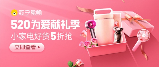 5月18日,蘇寧生活家電開啟520為愛獻禮季,無論是撒狗糧還是吃狗糧,精致小家電5折搶,讓你生活來電,有點甜。