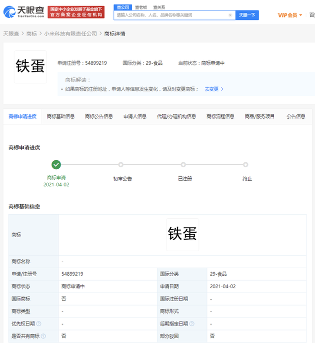 小米關(guān)聯(lián)公司申請注冊“鐵蛋”商標