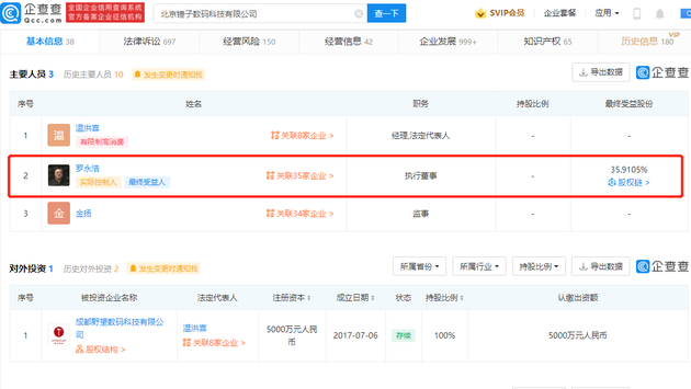 企查查信息顯示,羅永浩擔任該公司執行董事職務,目前該公司股權凍結信息已全部清零。