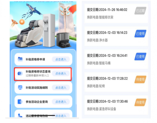 3.資格有效期。消費者在政策期內可隨時申領補貼資格,每類產品補貼最多可領取2次、核銷1次。每次申領成功后2天內有效,逾期可再次申請,每位消費者每種產品可享受1次補貼。