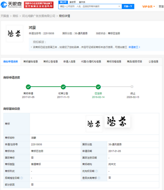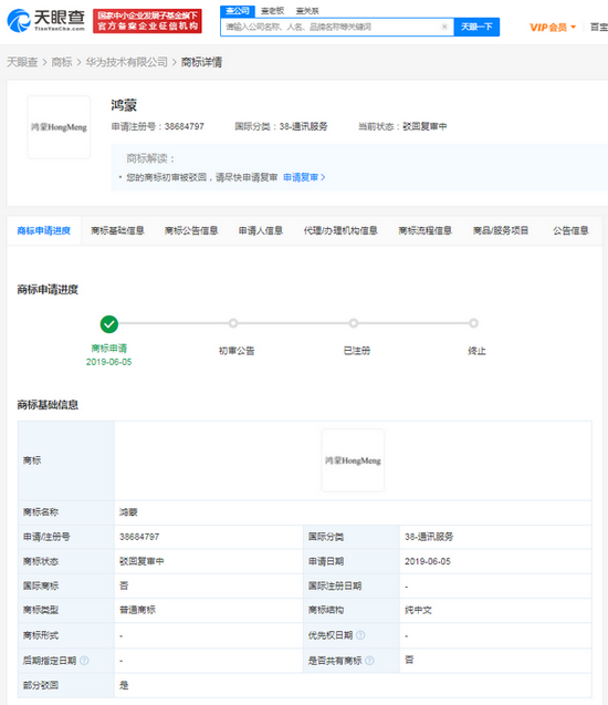 判決書顯示,原告華為技術有限公司,因不服國家知識產權局做出的商評字[2020]第333763號《關于第38684797號“鴻蒙HongMeng”商標駁回復審決定書》,向法院提起訴訟。