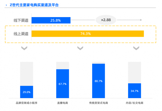 線上了解家電的同時(shí),“線上選購對(duì)比再下單”的模式更符合Z世代對(duì)便捷、高效的訴求,成為7成Z世代的共同選擇,其中值得注意的是,有3成Z世代用戶偏好在內(nèi)容/社交電商平臺(tái)購買家電。