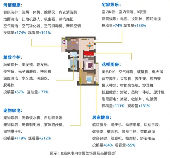 《報(bào)告》顯示,過去一年,B站觀看家電內(nèi)容的用戶進(jìn)一步增加,許多用戶更是有目的性地主動(dòng)搜索,將B站作為答疑解惑、甄別優(yōu)劣、篩選最適合產(chǎn)品的重要參考,家電相關(guān)內(nèi)容搜索量同比增長112%。