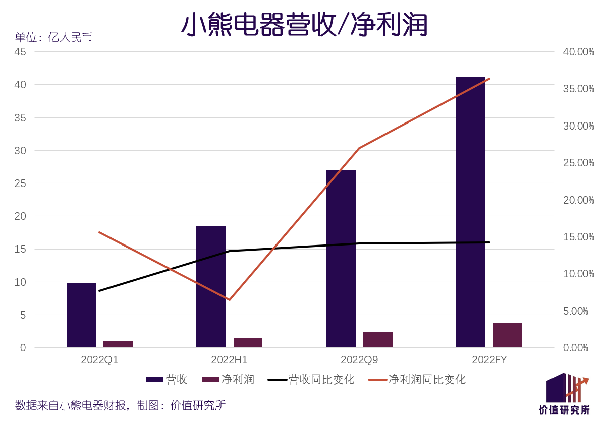 好在這個信號來得不算很晚。3月7日,小熊電器公布2022財年年報,營收、利潤均錄得同比增長,前者更創下新高。這份財報,也為衰退中的網紅小家電行業打了一劑強心針。
