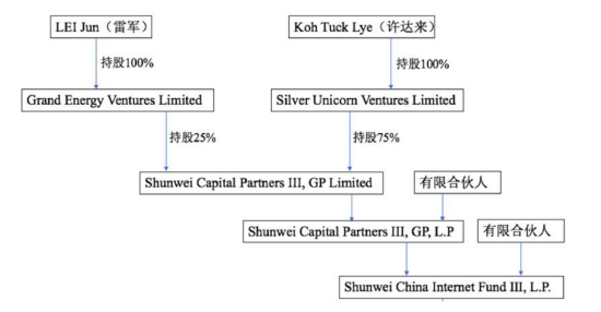Shunwei China Internet Fund III,L.P.持有雪祺電氣股份數量超過1.0257萬股,逐層向上追溯的最終普通合伙人為 Shunwei Capital Partners III, GP Limited,Shunwei Capital Partners III, GP Limited 逐層向上追溯的最終普通合伙人的股東為 Koh Tuck Lye(許達來)和雷軍,其中,Koh Tuck Lye(許達來)持有 50%以上權益,為 Shunwei 的實際控制人。Koh Tuck Lye是新加坡國籍,任順為資本CEO。