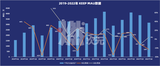 從2021年和2022年數據也不難看出,Keep的用戶數據雖有增長,但增長依舊處于較平緩狀態,且在個別季度還有倒退現象。