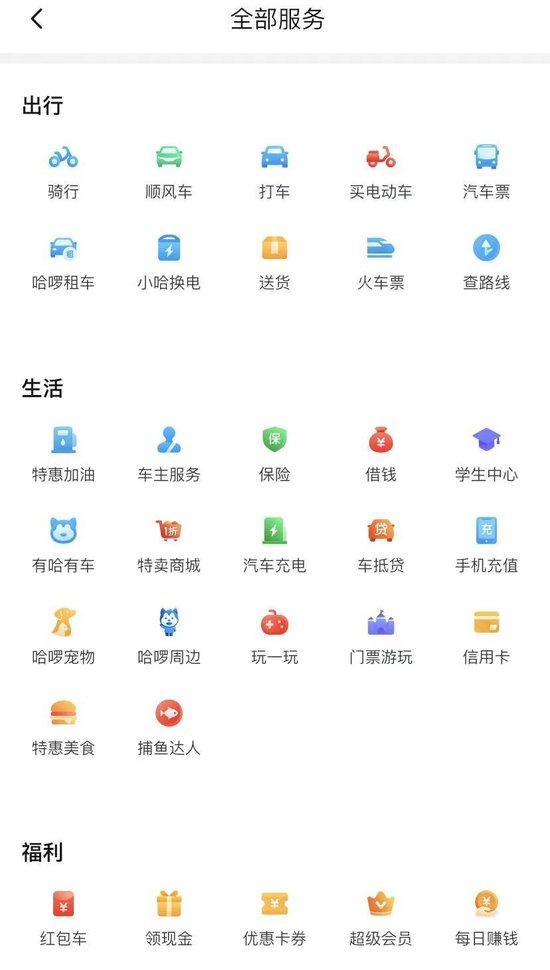 截止6月27日,哈啰出行APP全部服務界面截圖
