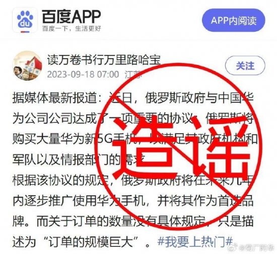【劃重點】: 近日,有社交平臺出現(xiàn)“俄羅斯、委內(nèi)瑞拉、沙特等國向華為訂購全新5G手機”的消息,并被多平臺和多賬號轉(zhuǎn)載。 9月18日深夜,華為通過微博官方藍V賬號“菊廠阿華”辟