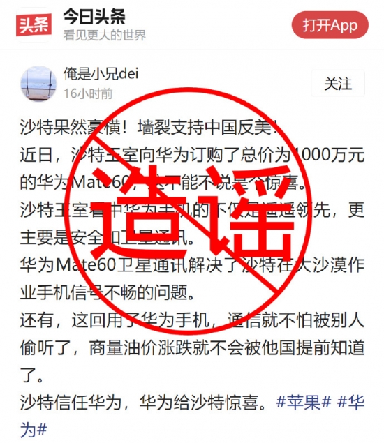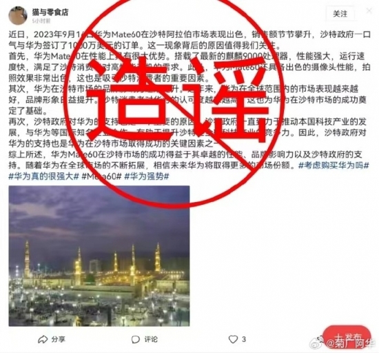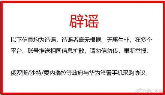 與俄羅斯、委內(nèi)瑞拉、沙特等國簽署手機采購協(xié)議?華為深夜辟謠:勿信勿傳,果斷舉報