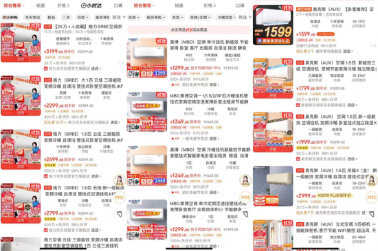 圖為:京東、淘寶等電商平臺(tái)空調(diào)銷(xiāo)量截圖