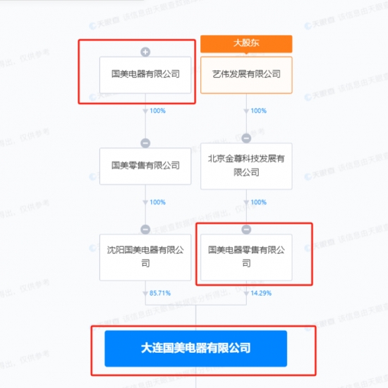 天眼查APP數據顯示,國美電器成立于2003年,從事批發業務為主。法定代表人董曉紅,同時也是該公司的執行董事、總經理。國美電器通過孫公司間接持有大連國美電器有限公司85.71%股權,為控股股東。