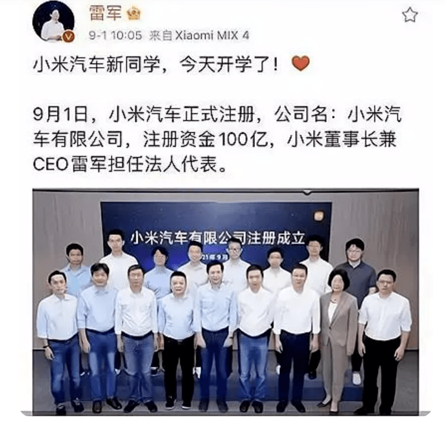 當時有市場猜測,雷軍減持套現是為造車,從官宣斥資100億元注冊小米汽車公司以來,小米造車就備受爭議,從小米官方之后“曬”出雷軍與小米汽車16位團隊骨干的合照中可以看出,除之前寶馬外觀設計師的李田原外,其他人都是小米內部骨干,并且都沒有汽車行業的工作經驗。這些骨干成員包括時任小米集團副總裁林世偉、小米高級副總裁張峰、小米高級副總裁盧偉冰(現任總裁)、小米聯合創始人洪峰、小米聯合創始人劉德和小米合伙人王翔等。清一色的小米元老,讓外界對小米造車的成功期待值降低不少。