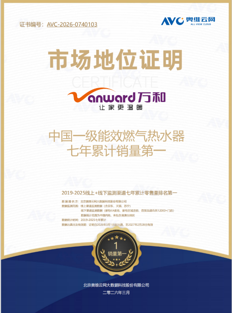 踐行雙碳戰略,萬和電氣七年累計銷量領跑一級能效燃氣熱水器市場